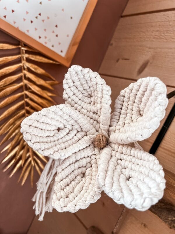 Vous rêvez d’un intérieur bohème ? Avec cette fleur en macramé, vous allez être gaté.e, vous pouvez la disposer sur une étagère ou dans un bouquet de fleurs séchées, elle sera parfaite pour décorer votre intérieur !