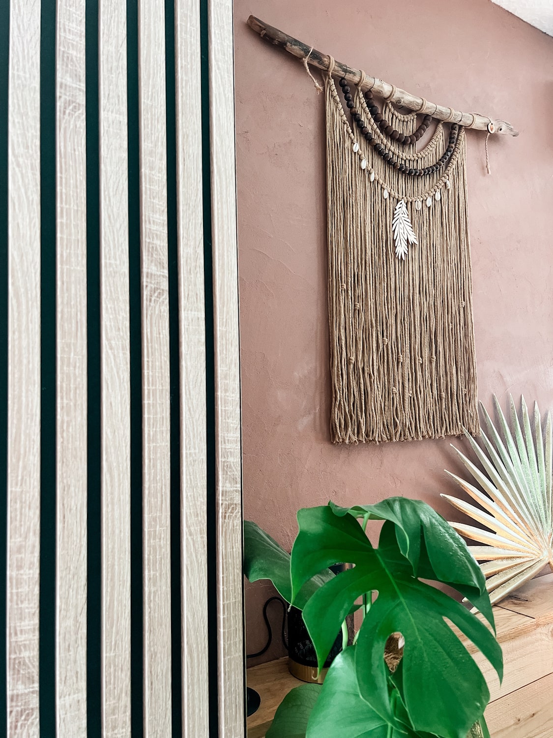 - Ses matières naturelles et de qualité. Cette décoration murale est un retour aux sources.